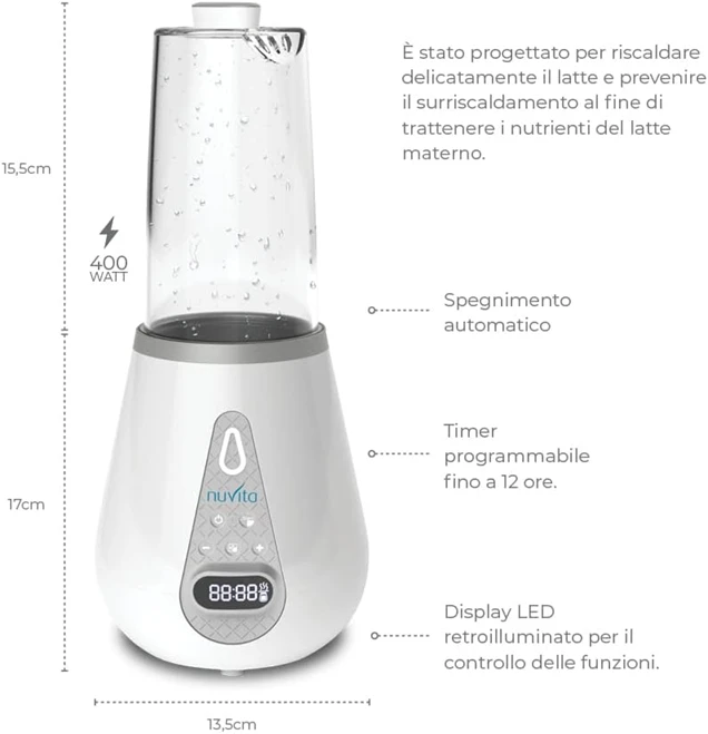 - ? AUTOMATISCHE TEMPERATURHALTUNG: Der Nuvita Flaschenwärmer gehört zur neuen Generation von Haushaltsgeräten mit automatischer Temperaturhaltefunktion. Ein Sensor erkennt Temperaturänderungen und das Gerät startet automatisch den Heizzyklus neu, um die Temperatur konstant bei 37 °C zu halten.