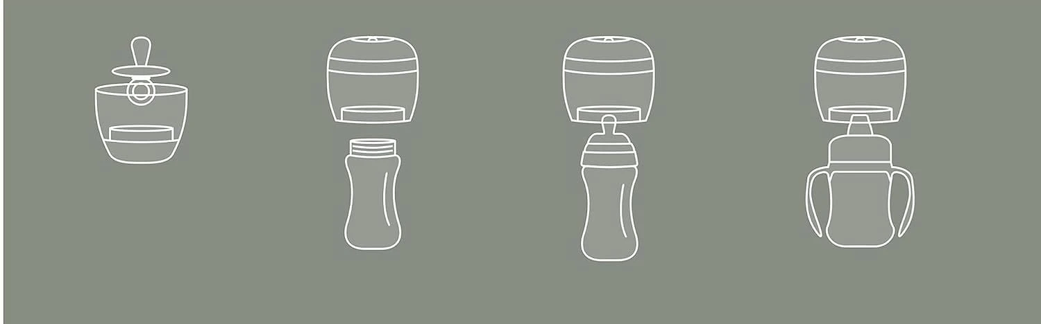 - Möglichkeit zur Sterilisation von Flaschen, kieferorthopädischen Schnullern, Flaschensaugern, Trinkaufsätzen.