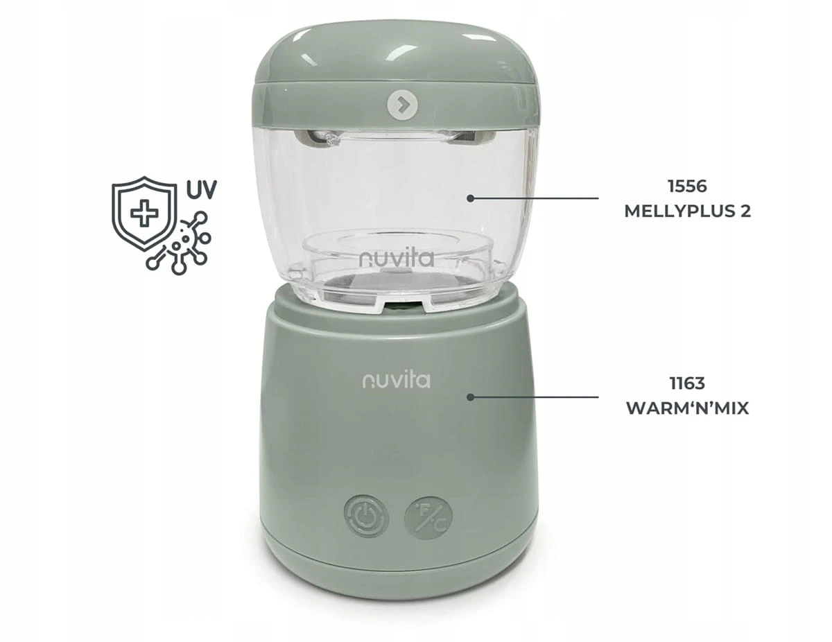 - Mit dem Gerät kann auch der Nuvita MellyPlus Sterilisator verbunden werden.