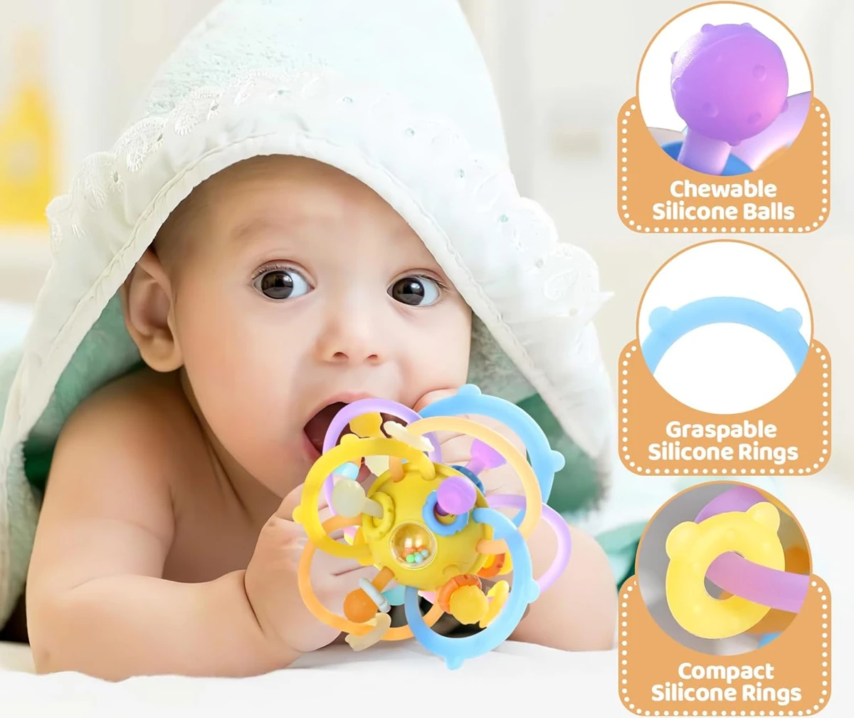 ORZBOW sensorischer Ball Beißring Greifling mit Rassel 8 x 12 cm
