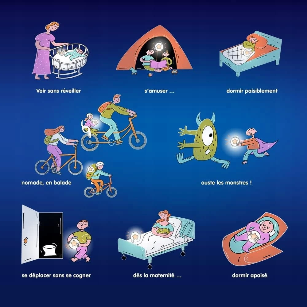- Kann als Nachtlicht verwendet werden oder damit das Kind im Dunkeln den Weg z.B. zur Toilette oder ins Elternzimmer beleuchten kann.