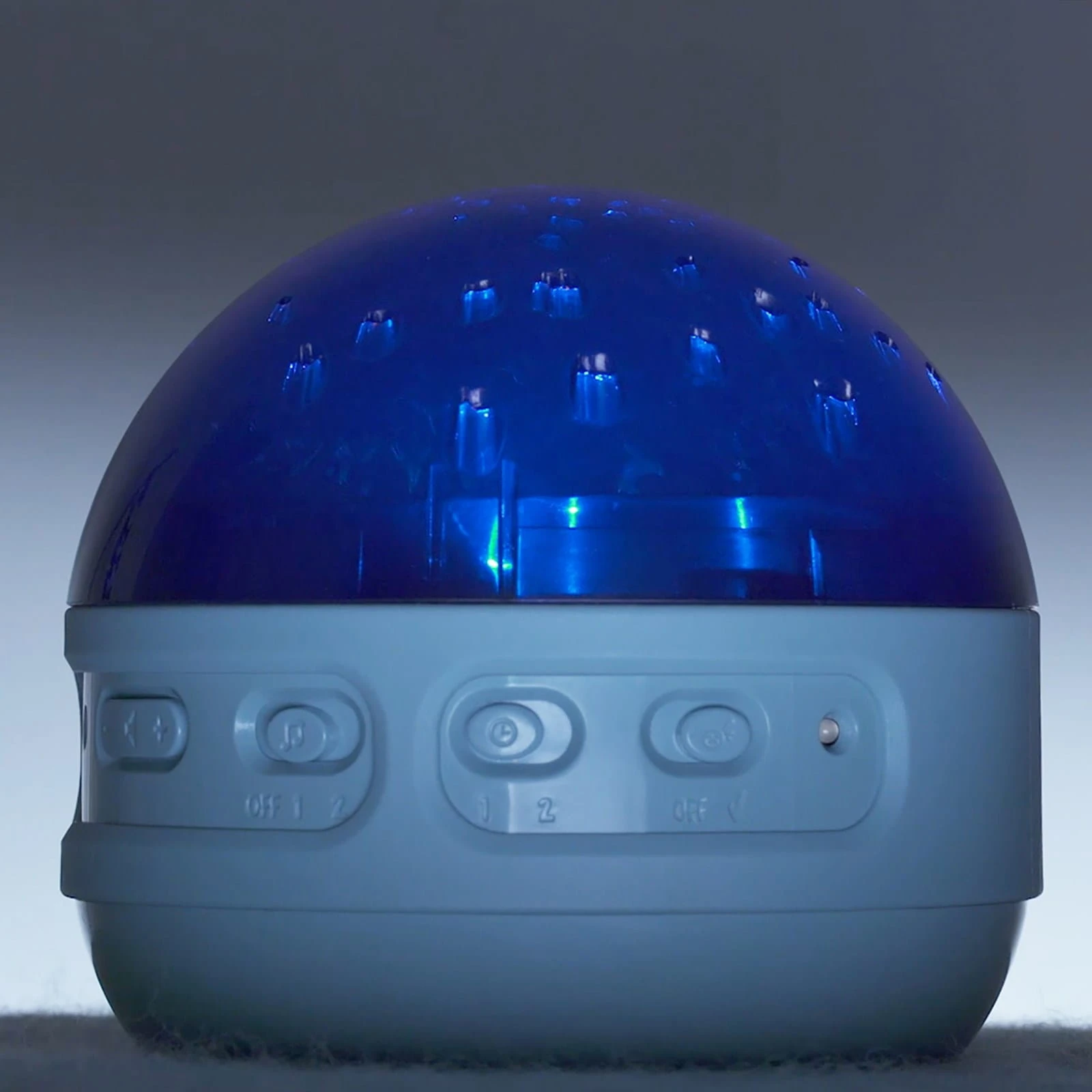- Der „ruhige Kind“-Modus bietet eine 20-minütige Sequenz mit drei Licht- und Musikphasen mit abnehmender Intensität.
