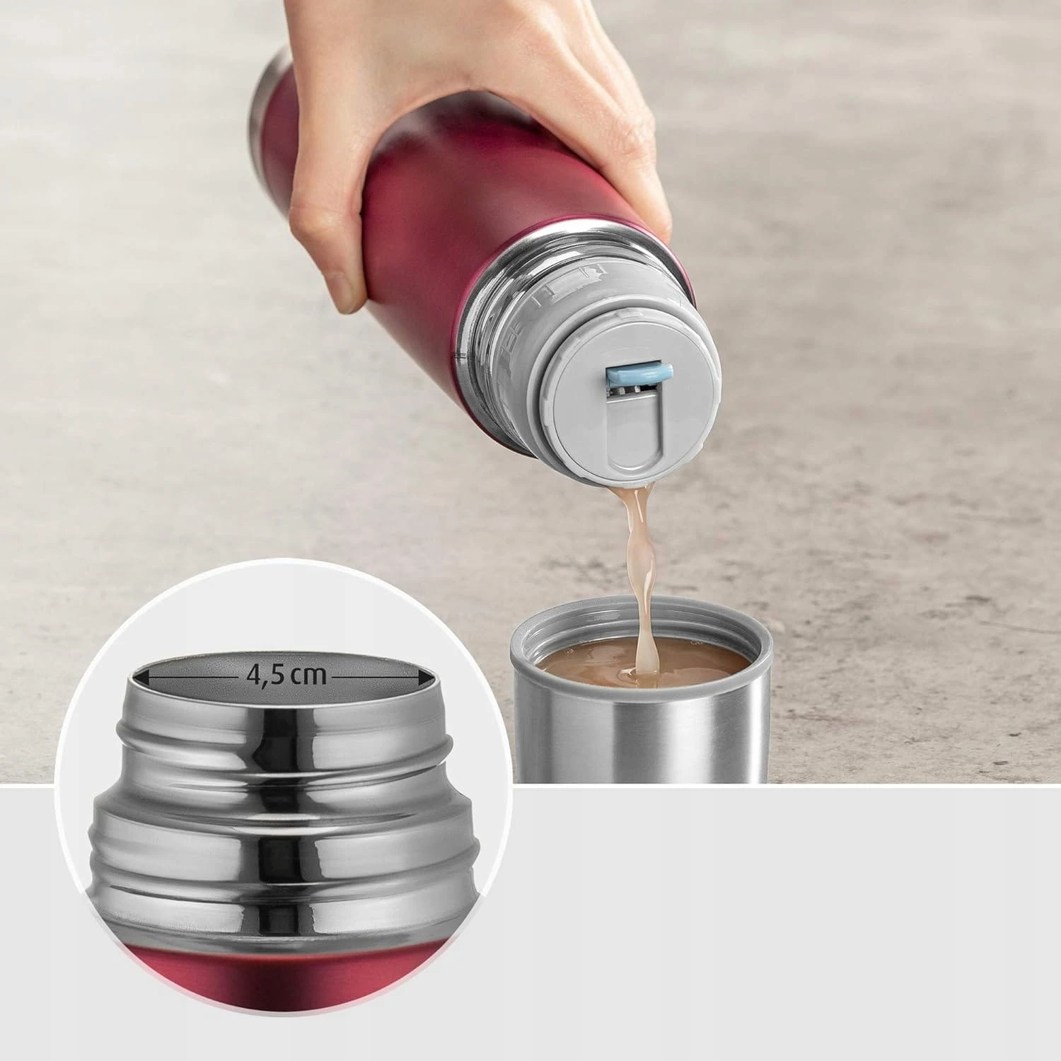 - Hält die Temperatur der Getränke: über 12 Stunden warm, über 24 Stunden kalt.