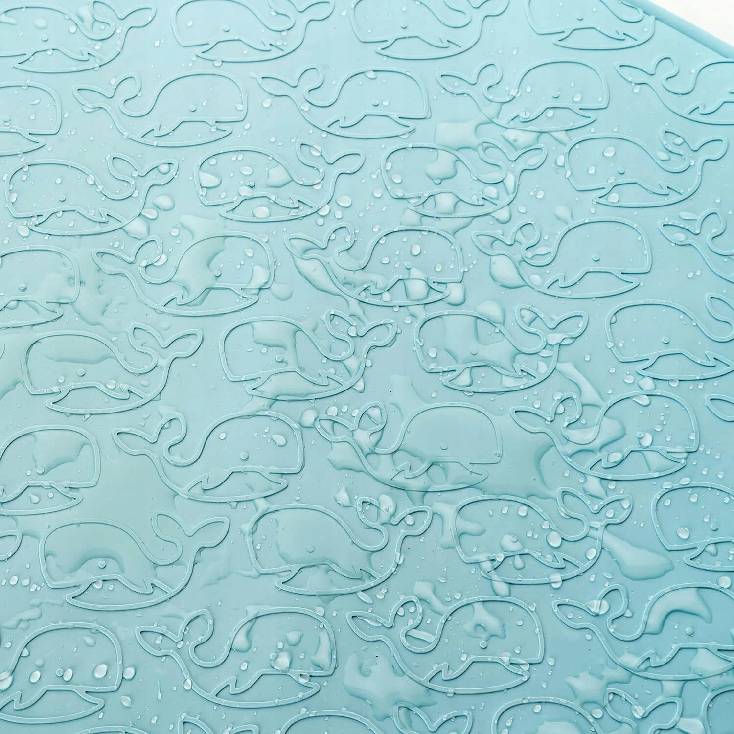- Unterseite mit sehr dicht angeordneten Saugnäpfen. Genau 101 Saugnäpfe – damit die Matte nicht mit dem Baby verrutscht