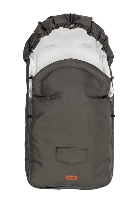 Mehrschichtiger und universeller Fußsack, entwickelt für Spaziergänge an kühleren Tagen. Ihr Kind fühlt sich darin sicher und komfortabel, und seine empfindliche Haut wird nicht gereizt.