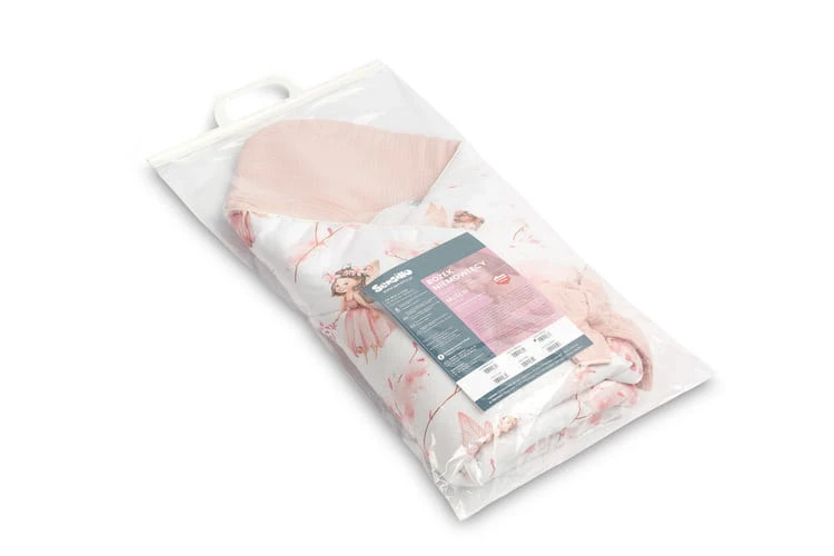 Das einseitige Baby-Pucktuch aus Musselin wurde speziell für Neugeborene und Säuglinge entwickelt. Der Klettverschluss ermöglicht ein bequemes Halten des Babys beim Füttern und Einschlafen. Nach dem Ausklappen kann das Pucktuch erfolgreich als Bettdecke für das Babybett oder den Kinderwagen verwendet werden. Es kann auch als Spielmatte dienen. Hergestellt aus Baumwollstoffen: bedruckte Baumwolle und Musselin. Die Füllung des Pucktuchs besteht aus antiallergischer, flauschiger Silikonvlies. Die hohe Verarbeitungsqualität wird durch eine ästhetische Paspelierung unterstrichen.