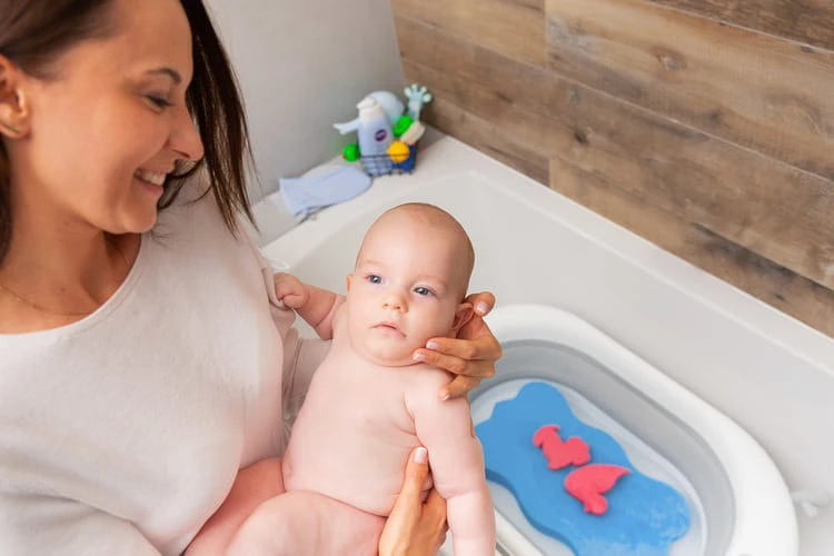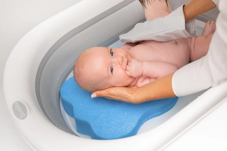 - Die anatomisch geformte Einlage sorgt für eine sichere Position des Babys während des Badens