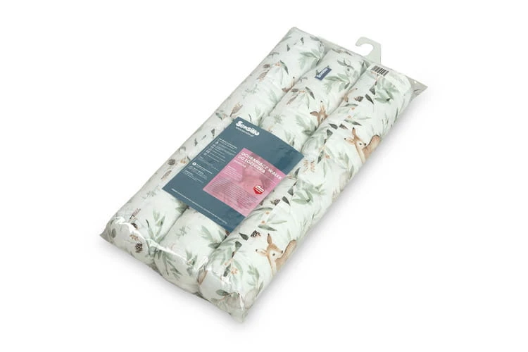 Bettkantenschutz in Form einer Rolle sorgt für Sicherheit und einen komfortablen Schlaf Ihres Kindes. Schützt vor Stößen gegen die Gitterstäbe und isoliert vor Kälte der Wand. Wenn er unter Türen oder Fenstern platziert wird, kann er als Zugluftstopper verwendet werden. Jedes Element des Schutzes ist weich und flexibel, das Material und die Füllung behalten ihre Eigenschaften auch nach mehrmaligem Waschen. Die Füllung besteht aus antiallergischen Silikonkugeln. Der Schutz besteht aus 3 Elementen mit jeweils 60 cm Länge.