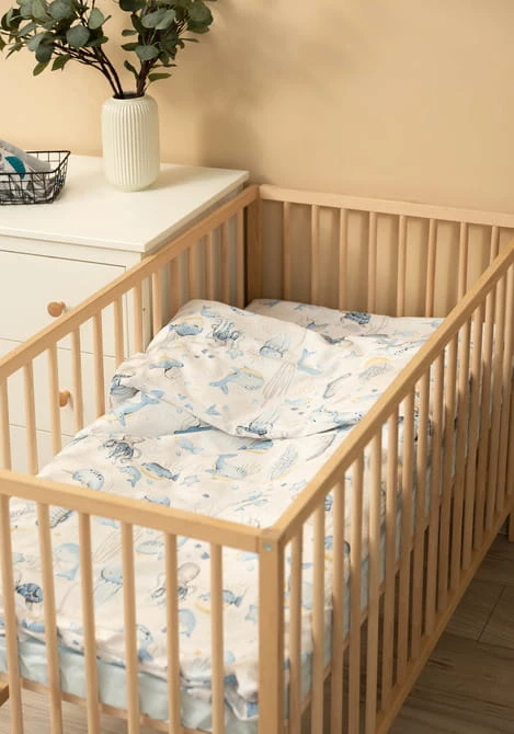 Das Set enthält Bezüge für Bettdecke und Kissen sowie ein Spannbettlaken. Es ist aus angenehm weicher und langlebiger 100% Baumwolle gefertigt. Geeignet für Kinderbetten 120x60 cm. Die Bezüge für Bettdecke und Kissen sind mit einem Reißverschluss versehen. Das Spannbettlaken hat einen eingenähten Gummizug. Die Farbkombinationen aus gemusterter Baumwolle und einfarbigem Spannbettlaken passen perfekt in jedes Kinderzimmer.