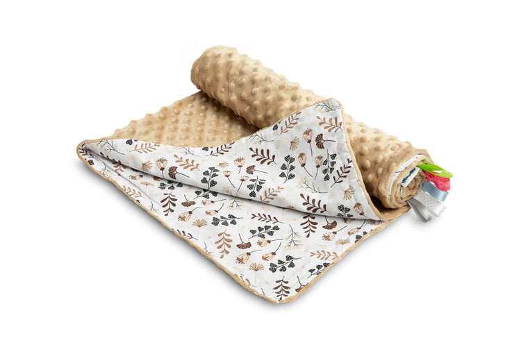 Leichte Minky-Decke ist die perfekte Lösung für Frühlings- und Sommerspaziergänge. Hergestellt aus zarter Baumwolle und weichem Minky-Stoff, kann sie je nach Bedarf beidseitig verwendet werden. Jedes Deckenmuster hat einen anderen bunten Aufdruck. Auf der Decke befinden sich auch farbige Bändchen, die jedes Baby interessieren werden. Universelle, leichte Decke für Kinderwagen oder Bettchen in der Größe 75×100 cm.