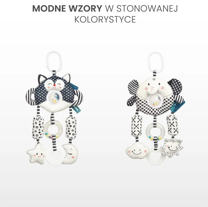 SENSILLO Kinderwagenanhänger mit Beißring und Rassel BLACK&WHITE