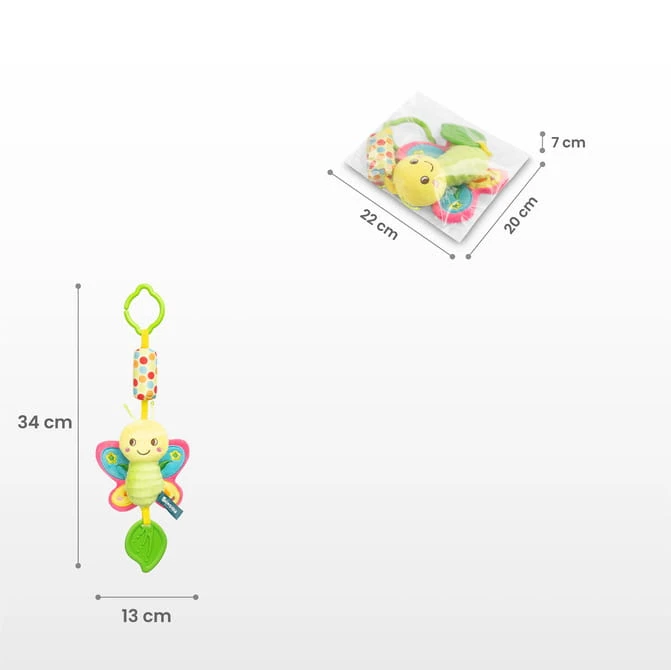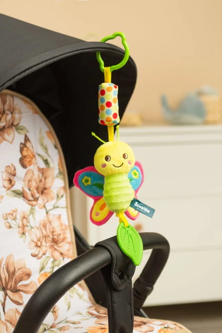 Dank des praktischen Clips lässt sich der Anhänger einfach am Kinderwagen, Autositz oder Babybett befestigen und bietet Ihrem Kind in jeder Situation Unterhaltung und Geborgenheit.
