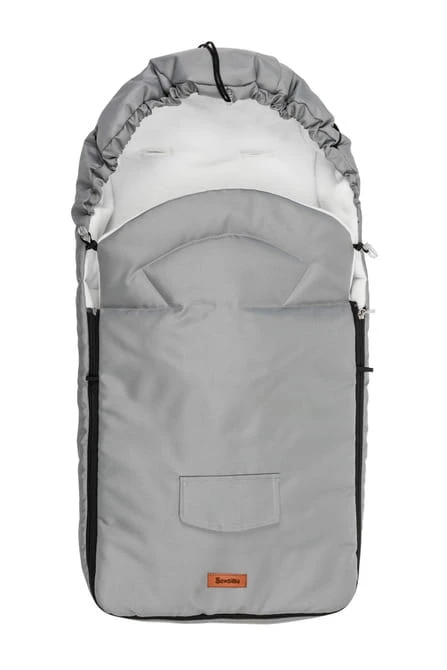 Mehrschichtiger und universeller Fußsack, entwickelt für Spaziergänge an kühleren Tagen. Ihr Kind fühlt sich darin sicher und komfortabel, und seine empfindliche Haut wird nicht gereizt.