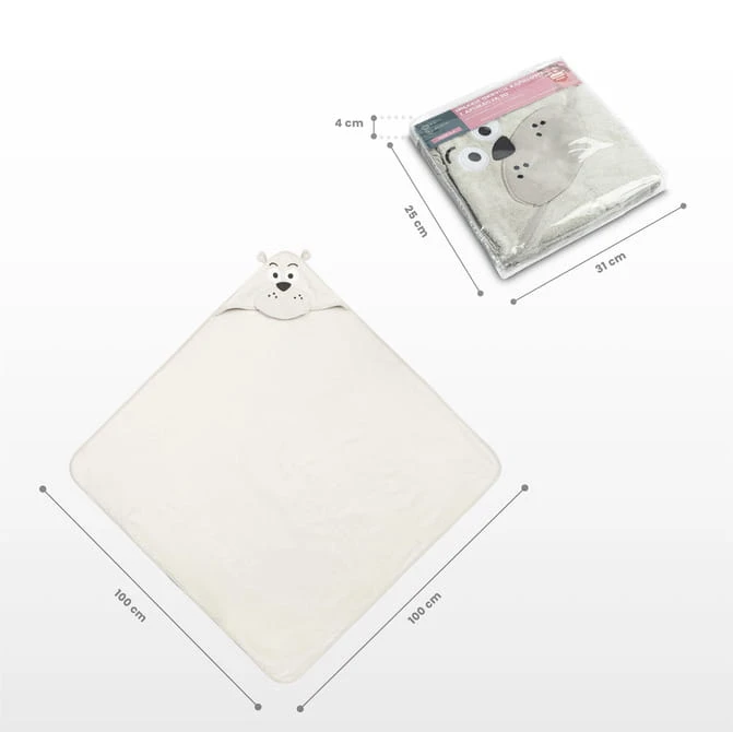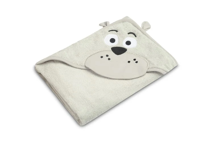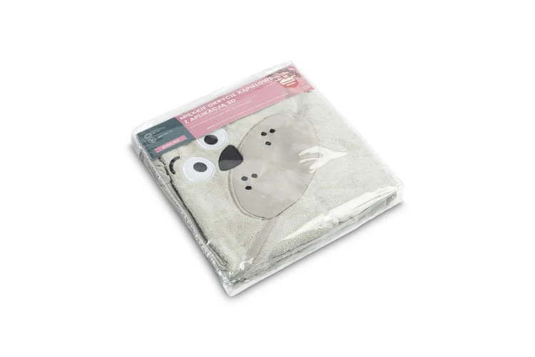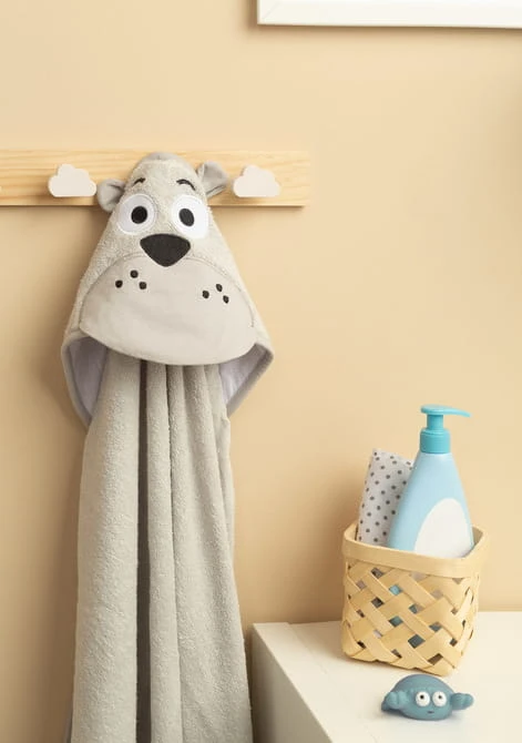 Die Kapuze schützt den Kopf des Kindes vor Kälte und erleichtert das schnelle Trocknen der Haare. Die Applikation in Form niedlicher Tiere zieht die Aufmerksamkeit des Kindes auf sich und macht das Baden zu einem angenehmen Moment des Tages.