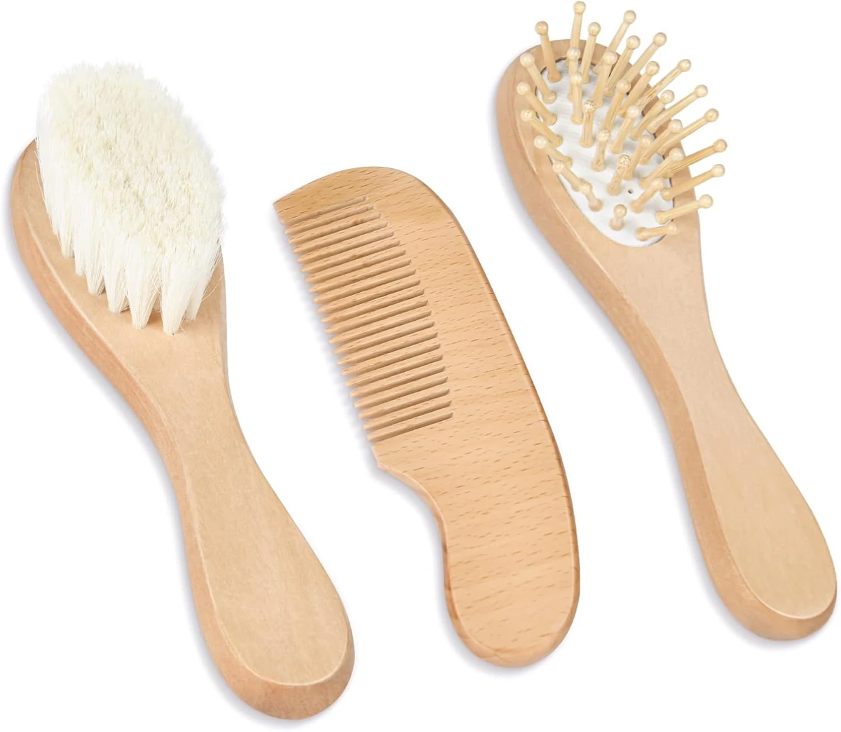- Sanfte Pflege ab den ersten Lebenstagen. Unser Holz-Kammset vereint Eleganz mit Funktionalität: Bürste mit natürlichem, seidig weichem Ziegenhaar, Kamm mit Luftpolster (pneumatisch) und Flachkamm. Glatt geformte Holzgriffe liegen angenehm in der Hand und sind komfortabel in der Anwendung, das weiche Haar ist besonders sanft zur empfindlichen Kopfhaut des Babys.Warum lohnt es sich?Was ist im Set?Wie verwenden?Pflege und ReinigungSicherheitshinweiseNur unter Aufsicht von Erwachsenen verwenden. Vermeiden Sie starken Druck auf die Fontanelle und empfindliche Kopfhautbereiche.
