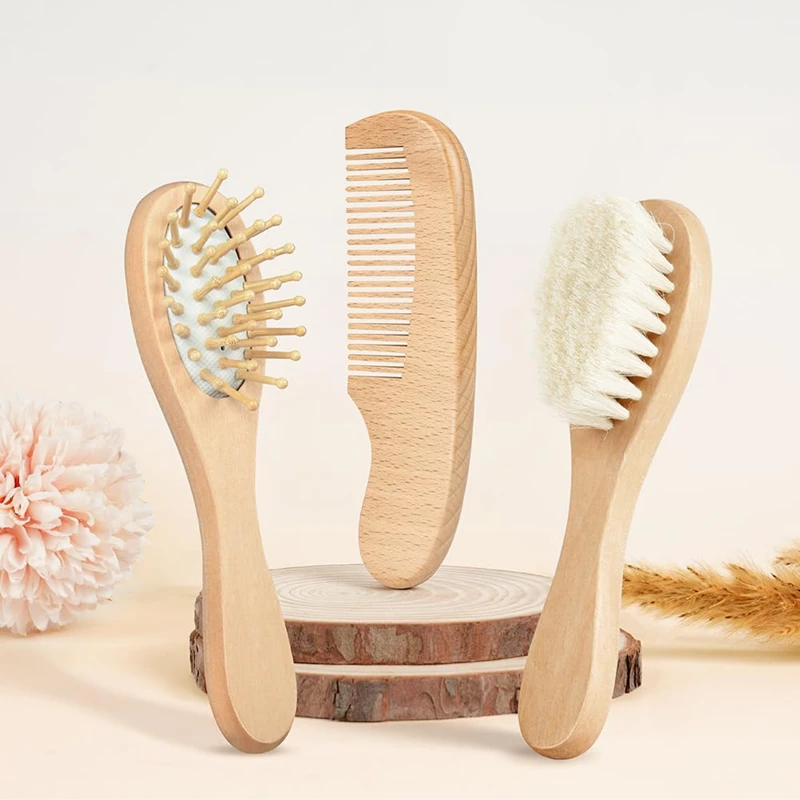 - Ergonomische Form: Abgerundete Holzgriffe liegen gut in der Hand der Eltern; ältere Babys können das selbstständige Kämmen üben.