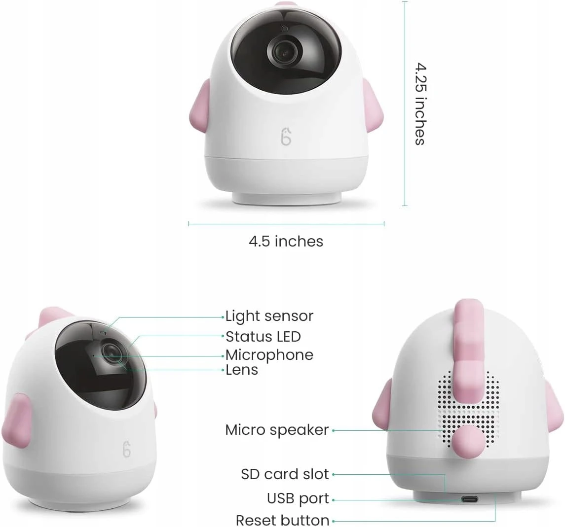 SIMSHINE Baby Pro Kamera 2K FHD 360° elektronische Babyphone iOS Android + Halterung
