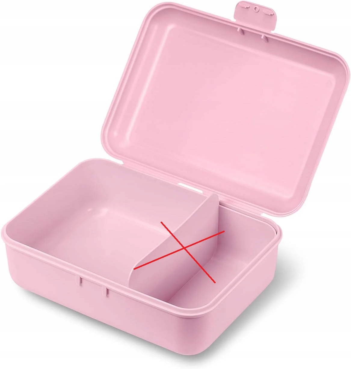 - Sie verfügt über eine bewegliche Trennwand, mit der die Dose in zwei Fächer unterteilt werden kann, z.B. ein größeres für Sandwiches und ein kleineres für Obst, geschnittenes Gemüse oder andere Snacks.