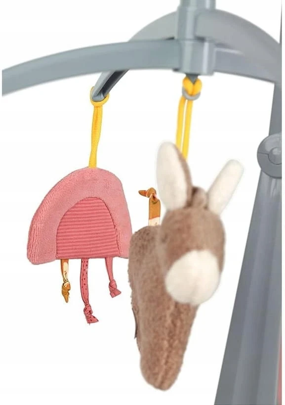 - Materialien: Karussell Kunststoff, Spielzeuge Baumwolle, Velours, Fleece, Füllung 100% Polyester
