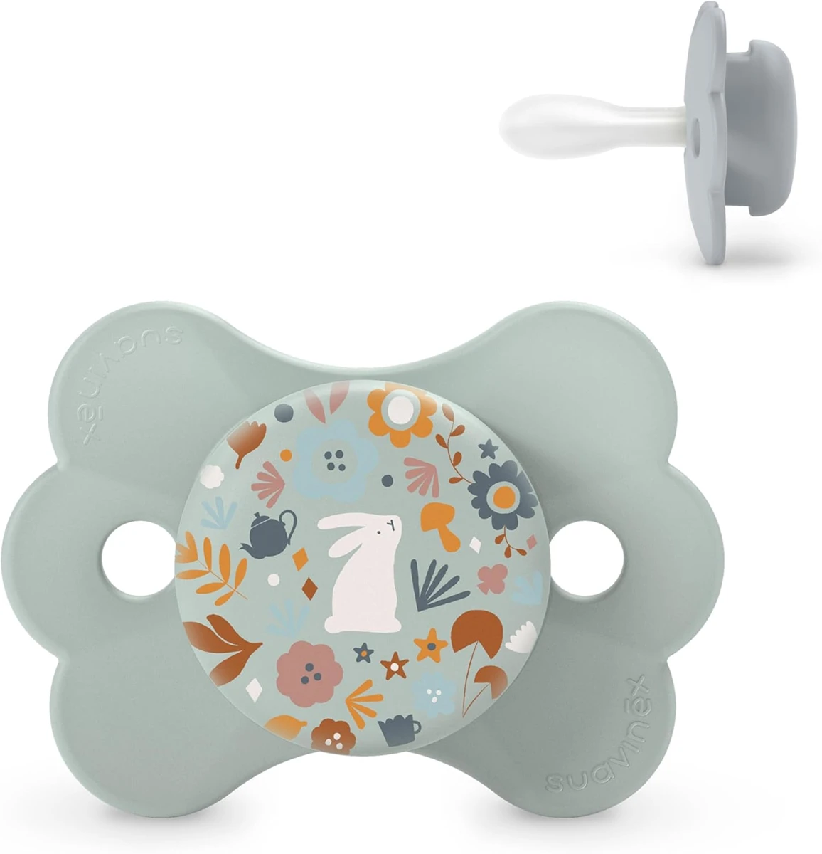 - Silikon. Schnuller mit ultraweichem, physiologisch sanftem Silikonsauger, der die Textur und Konsistenz der Muttermilch nachahmt.