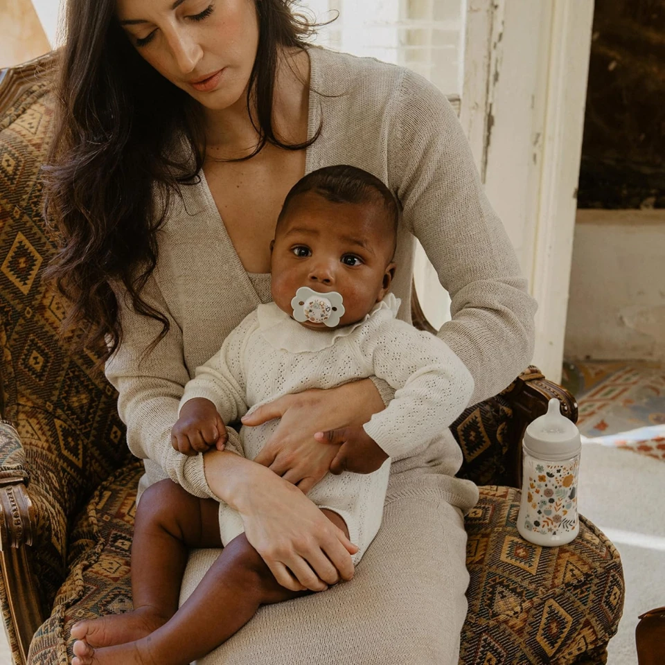 - Respektiert die orale Entwicklung. Der SX Pro Schnuller wurde so konzipiert, dass er nicht in die Mundhöhle eindringt und dem Baby das gleiche Gefühl vermittelt wie im natürlichen/physiologischen Zustand, wenn es keinen Schnuller benutzt.