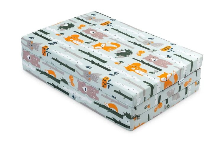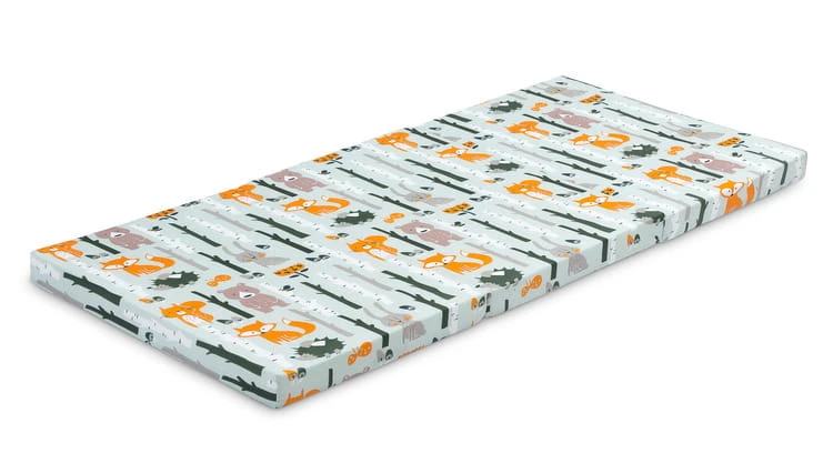 Die Matratze passt in die meisten Reise- und klassischen Kinderbetten. Sie vereint den Komfort einer vollwertigen Kindermatratze mit geringem Gewicht und kompakten Maßen. Der abnehmbare Baumwollbezug ist langlebig und ästhetisch. Jedes Modell zeichnet sich durch ein einzigartiges Muster aus.