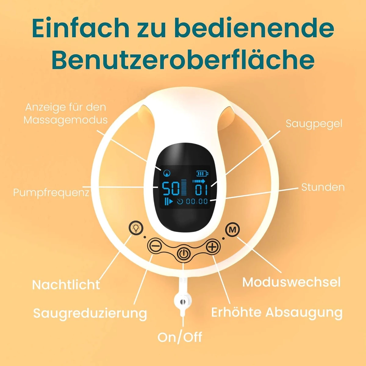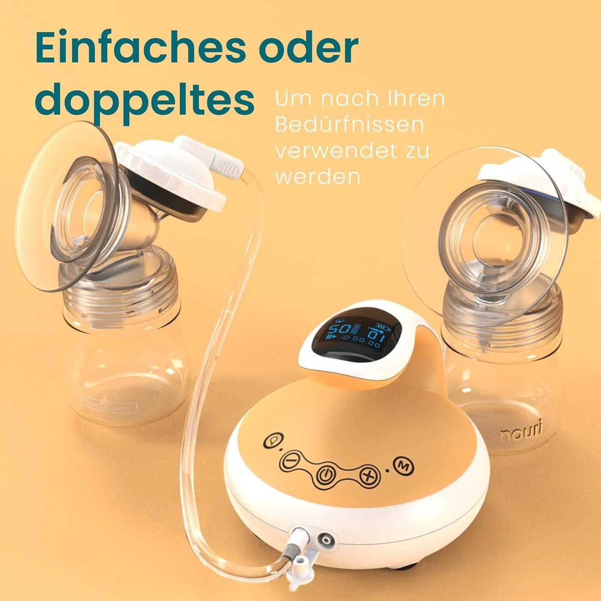 - Nachtlicht: Nouri Duo verfügt über ein beleuchtetes LCD-Display und eine optionale Nachtlichtfunktion, die ein leises Abpumpen zu jeder Nachtzeit ermöglicht, ohne jemanden zu stören. So können Sie bequem abpumpen, wann immer Sie es brauchen und wann es Ihnen passt.