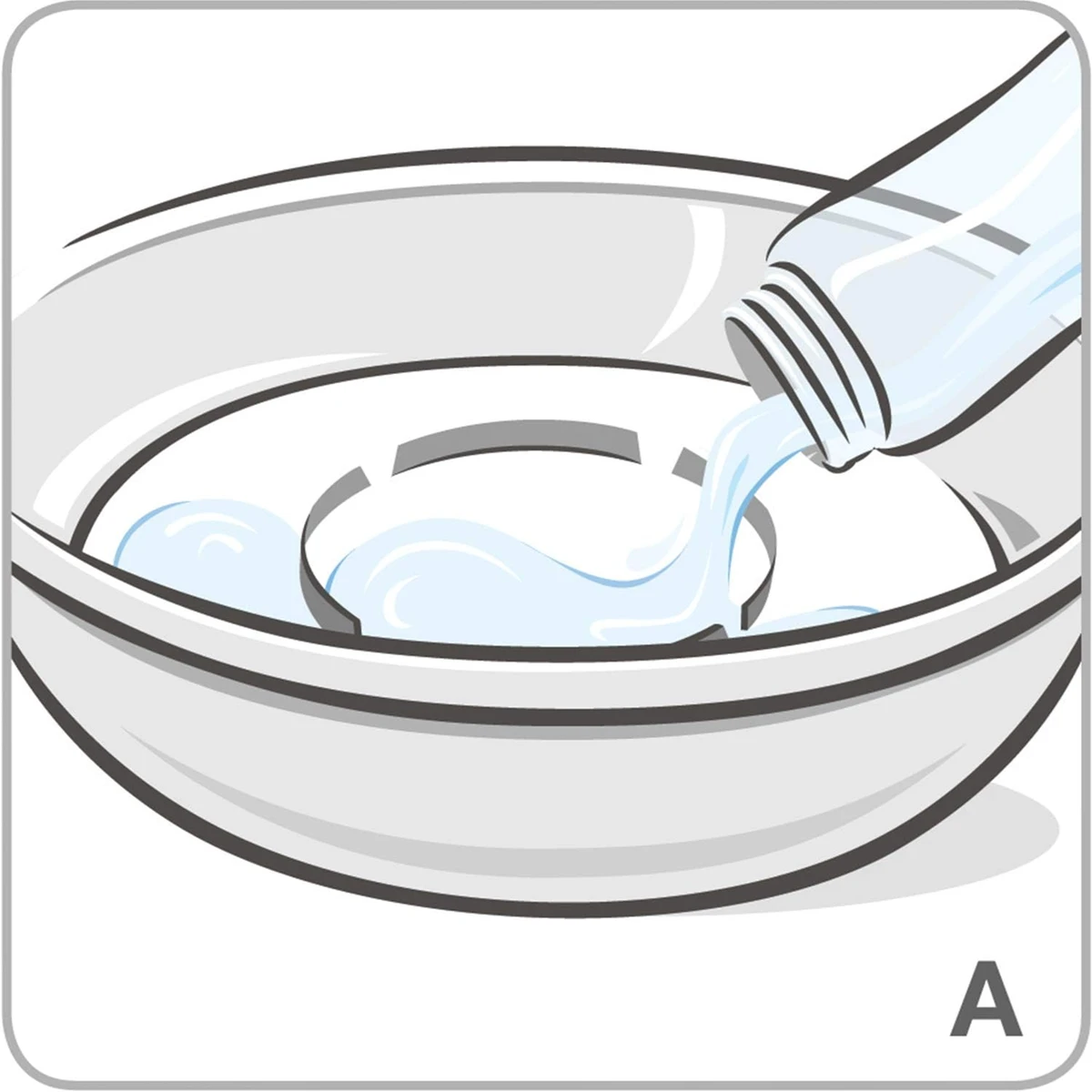 - Der Inhalt bleibt 24 Stunden lang steril, wenn der Behälter verschlossen bleibt.