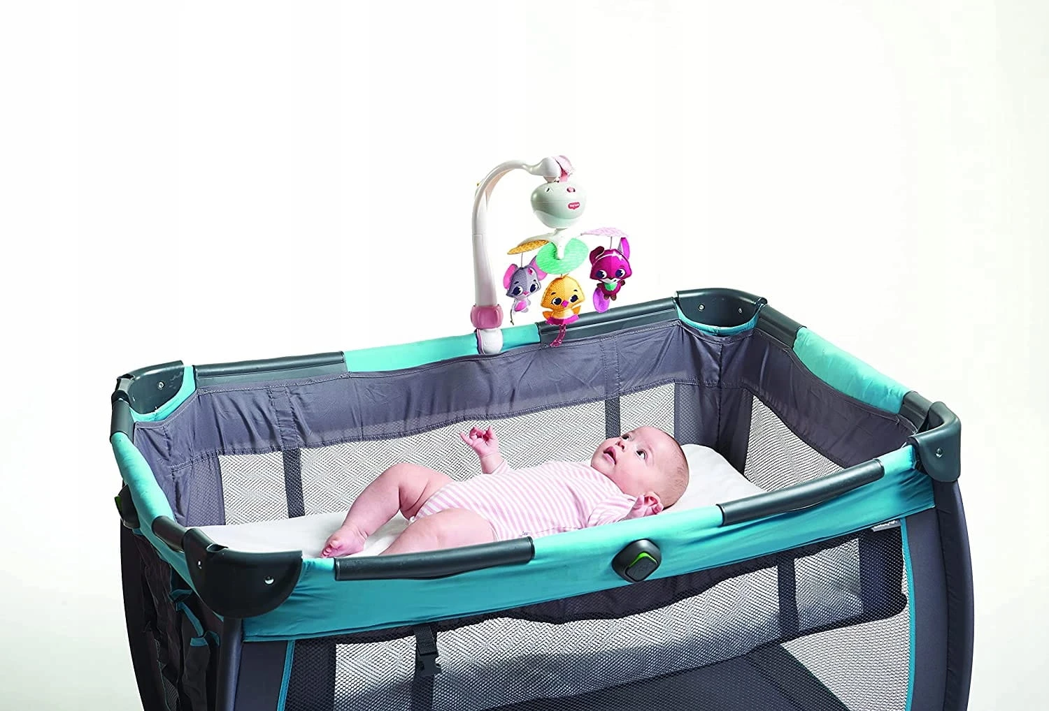 - Die Befestigung passt auf die meisten Babybetten, Wiegen, Laufställe, Autositze und Kinderwagen.