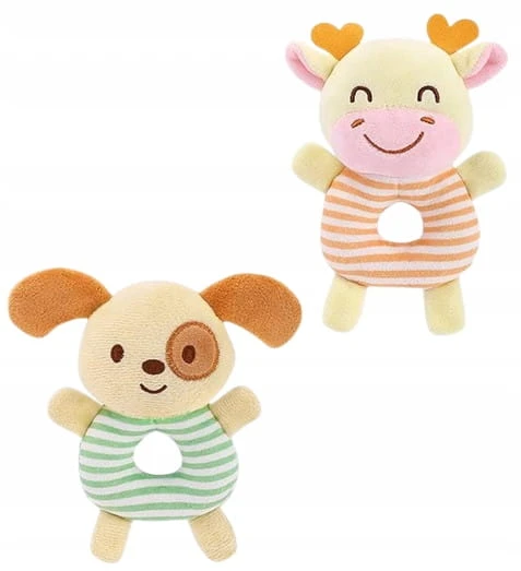 TOLOLO Plüsch-Kuscheltier mit Rassel und Quietsche HUND und GIRAFFE 13,5 cm