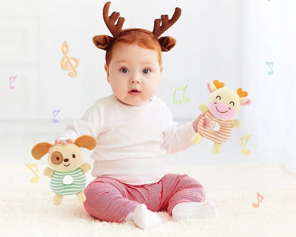 - Plüsch-Kuscheltier mit Rassel, Quietsche und Knisterpapier.