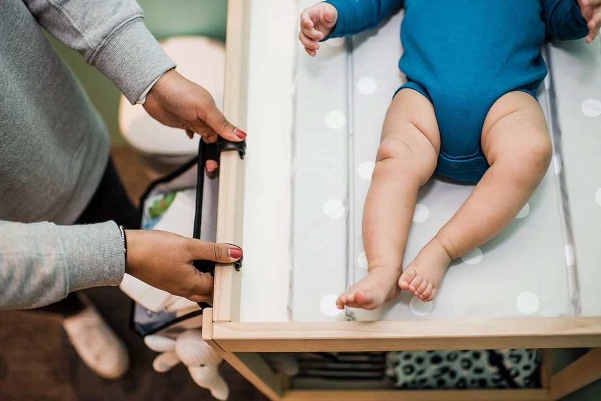 - Ablage für Zubehör wie Feuchttücher, Tücher, Cremes und mehr.