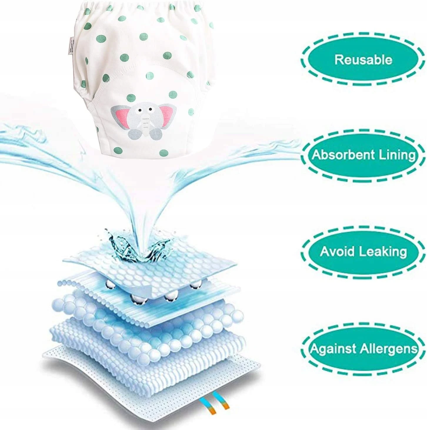 - Trainingsunterhosen für Babys: 100% Baumwolle (Einlage) + 15% wasserdichte PU-Schicht, maschinenwaschbar oder Handwäsche bei 30 Grad, weich und bequem. Die Trainingshosen sind wiederverwendbar.