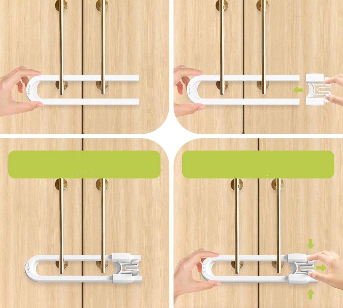 - Die Sicherung schützt Kinder vor dem Zugriff auf Schränke mit Doppeltüren.