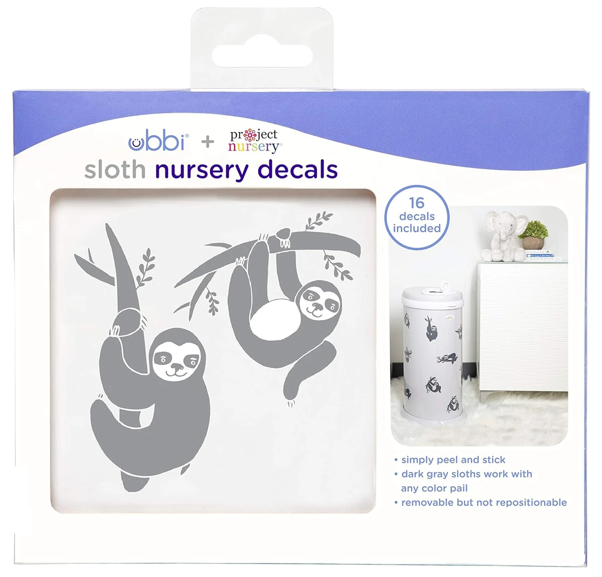 UBBI dekorative Aufkleber für Eimer, Trinkflasche, Flasche und mehr FAULTIER 16 Stück