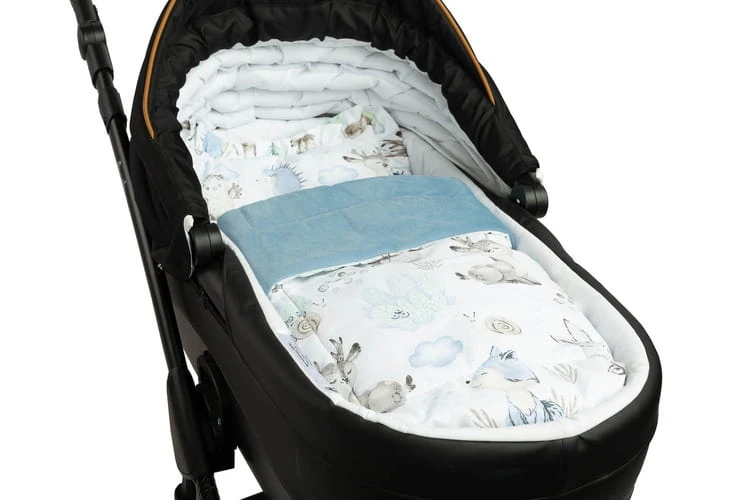 VELVET-KINDERWAGENSET MIT RÜSCHE BLAU FÜR BUGGY