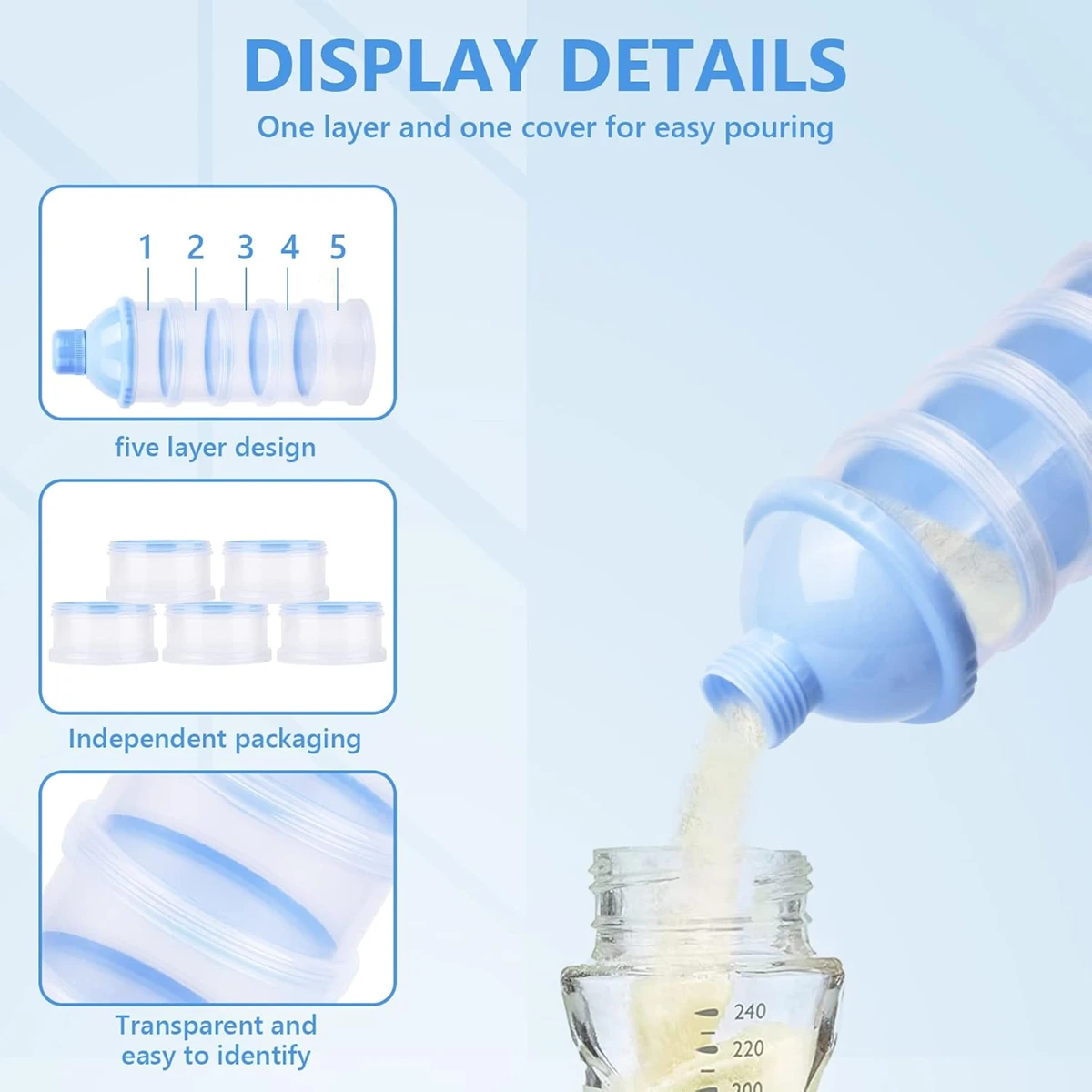 - 5-lagige Fächer: Der Milchpulverspender für Babys verfügt über 5 Fächer mit einem Fassungsvermögen von jeweils 100 ml, transparentes Design, jedes Fach hat einen eigenen Deckel, was den Zugriff auf mehrere Gegenstände gleichzeitig erleichtert. Mit dem Trichterdeckel lässt sich Milchpulver einfach einfüllen.