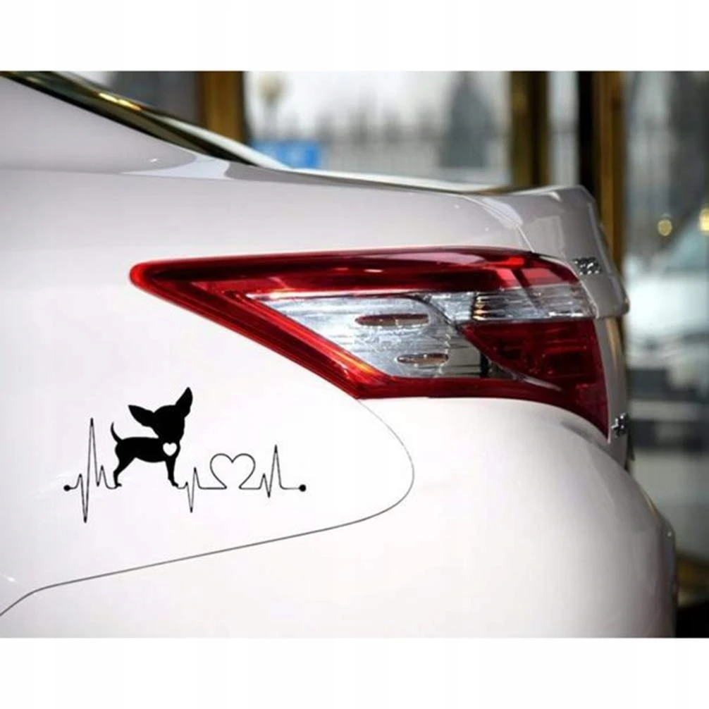 VOSAREA wasserdichter Autoaufkleber Chihuahua und Herzschlag 15,5 cm