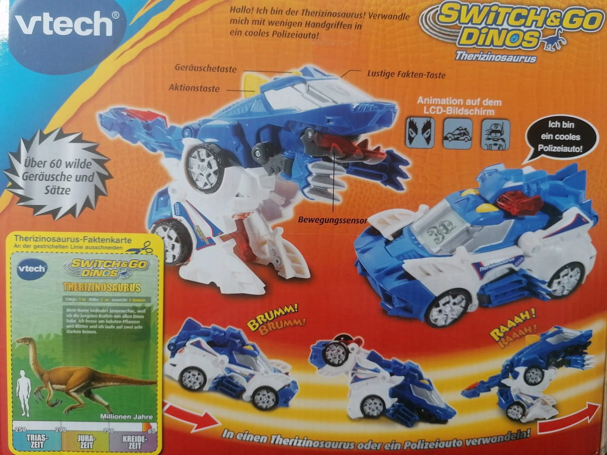 - Das Spielzeug kann in wenigen einfachen Schritten vom Fahrzeug zum Dinosaurier und umgekehrt verwandelt werden.