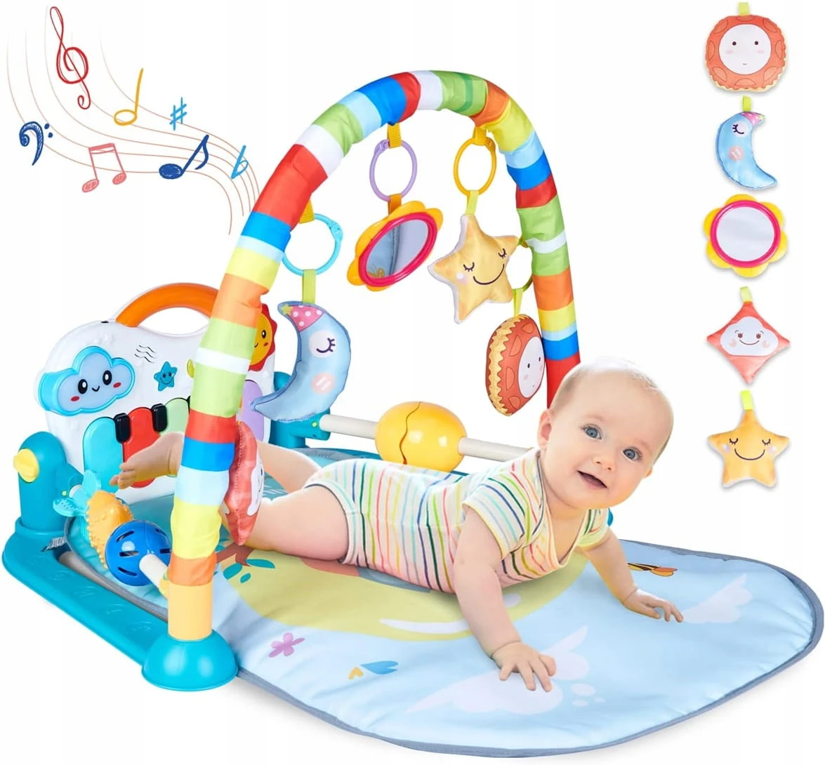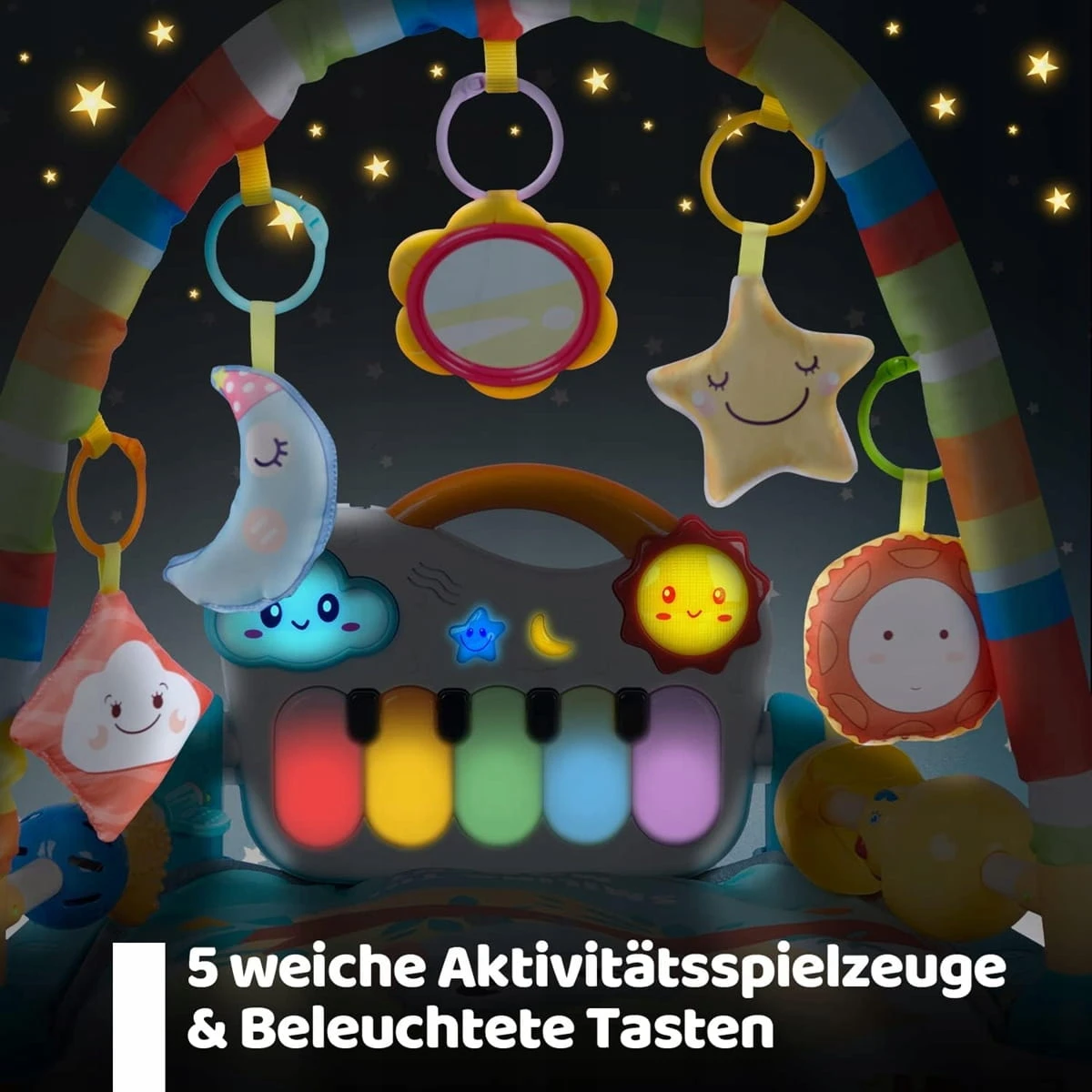 - Komplettes Zubehörset: Unser Baby-Fitnessstudio umfasst ein Touch-Klavier und eine gepolsterte Matte, 5 abnehmbare bunte Rasseln und 4 Stoffspielzeuge mit kleinem Spiegel. Über 50 Melodien und 8 LED-Lichter (einschließlich Projektionslicht und Skalen) sorgen für endlosen Spielspaß für Kinder in der Zielaltersgruppe.